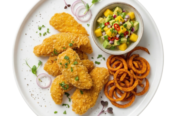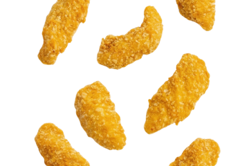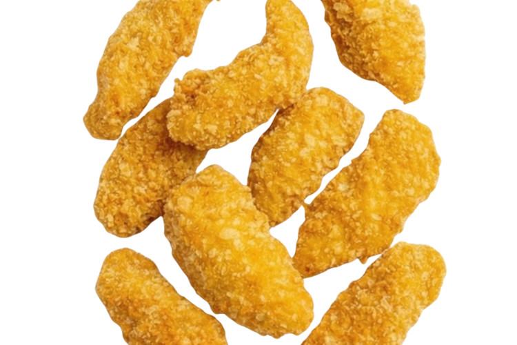 Chicken breast fillet, coating (wheat flour, water, cornflakes (corn, sugar, salt, barley malt), natural spices, yeast, salt, egg powder), rapeseed oil, potato starch, acidity regulator: citric acid.